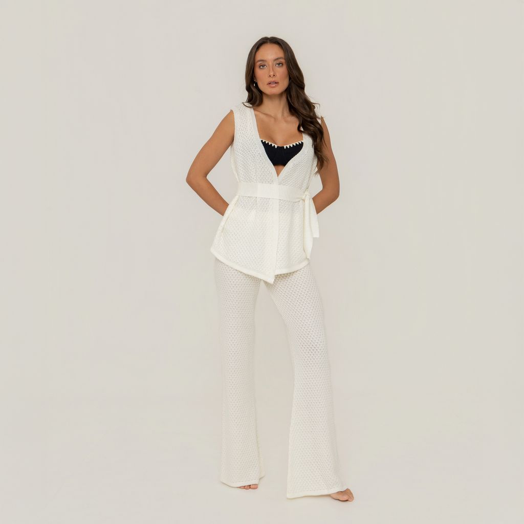 Conjunto em Tricot, parte de cima estilo kimono com cinto em tricot.