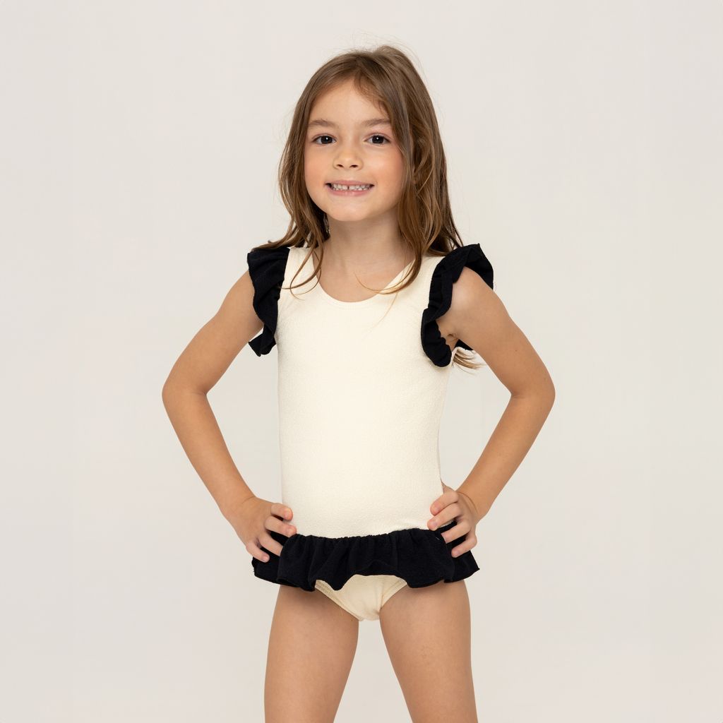 Maiô infantil com babados nas alças e cintura